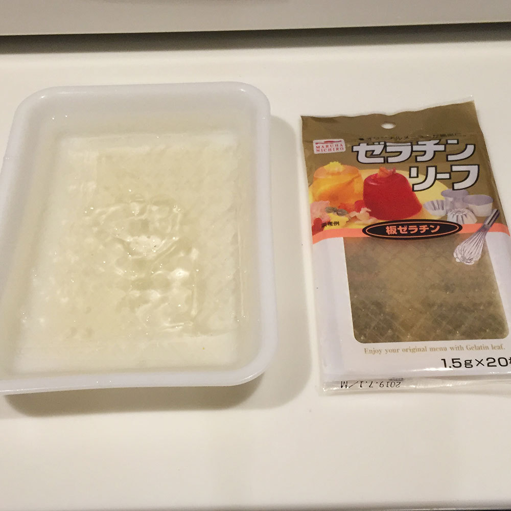 - 板ゼラチンを水に浸し柔らかくします(3分位)