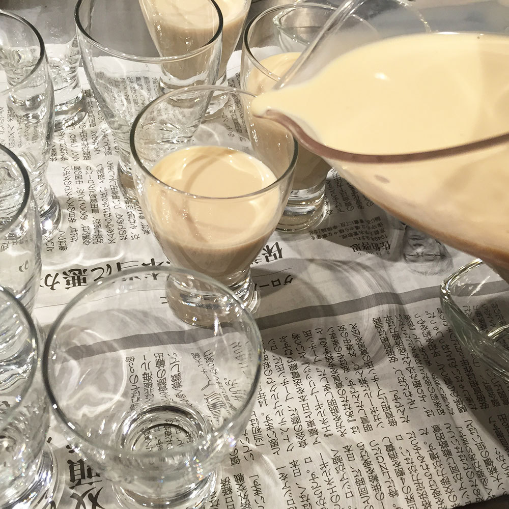 - 注ぎやすいように計量カップなどに液を移して、グラスに注ぎます。(垂らすので新聞を敷いて置くと片付けが楽です)