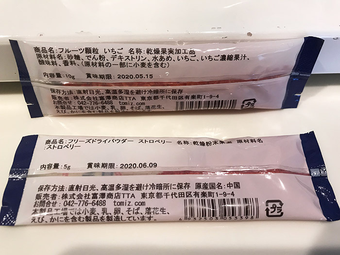 - 食べる直前にこちらのパウダーを2種ふりかけました(フリーズドライの苺パウダーと、苺キャンディーのカリカリ)